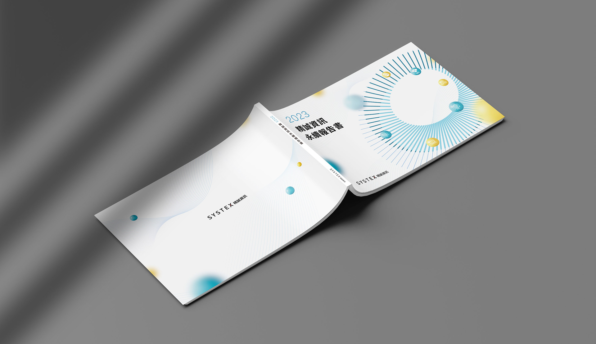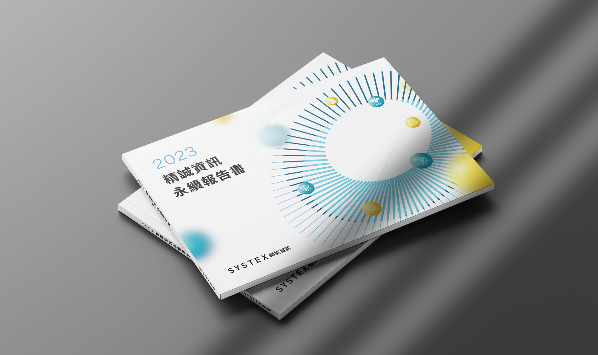 本封面設計以緊密交織、層層遞進的放射狀圓環為核心視覺,象徵資訊生態系統持續擴張與演進的動能。圓環由中心向外延展,形成富有節奏感的結構秩序,呼應企業在數位整合與永續布局上的系統思維。環形中不同的色彩與線條粗細變化,分別隱喻經濟、環境與人文三大面向——看似屬於不同光譜,實則源自同一核心價值,只是觀察與切入角度的差異。整體畫面在理性幾何架構下融入柔和漸層光感,使科技專業形象中保有溫度,體現企業以整合之力推動永續發展的願景。