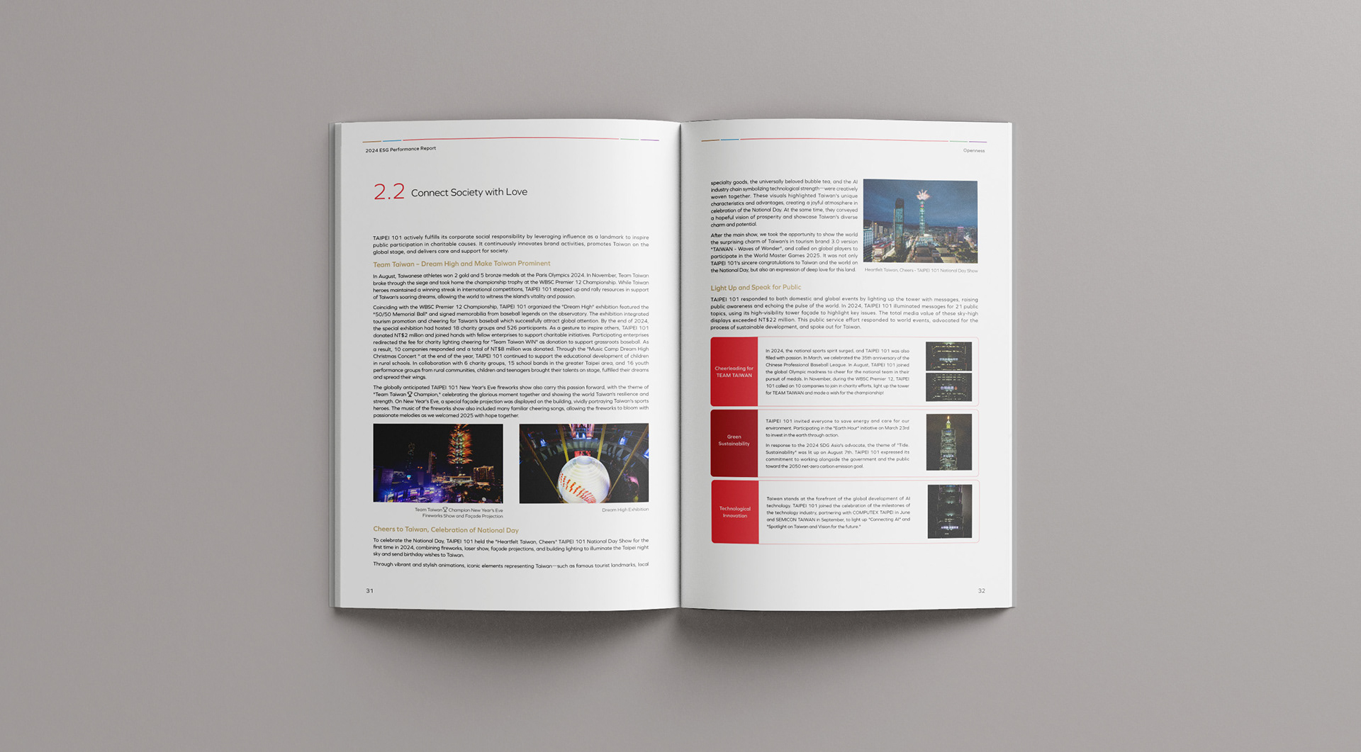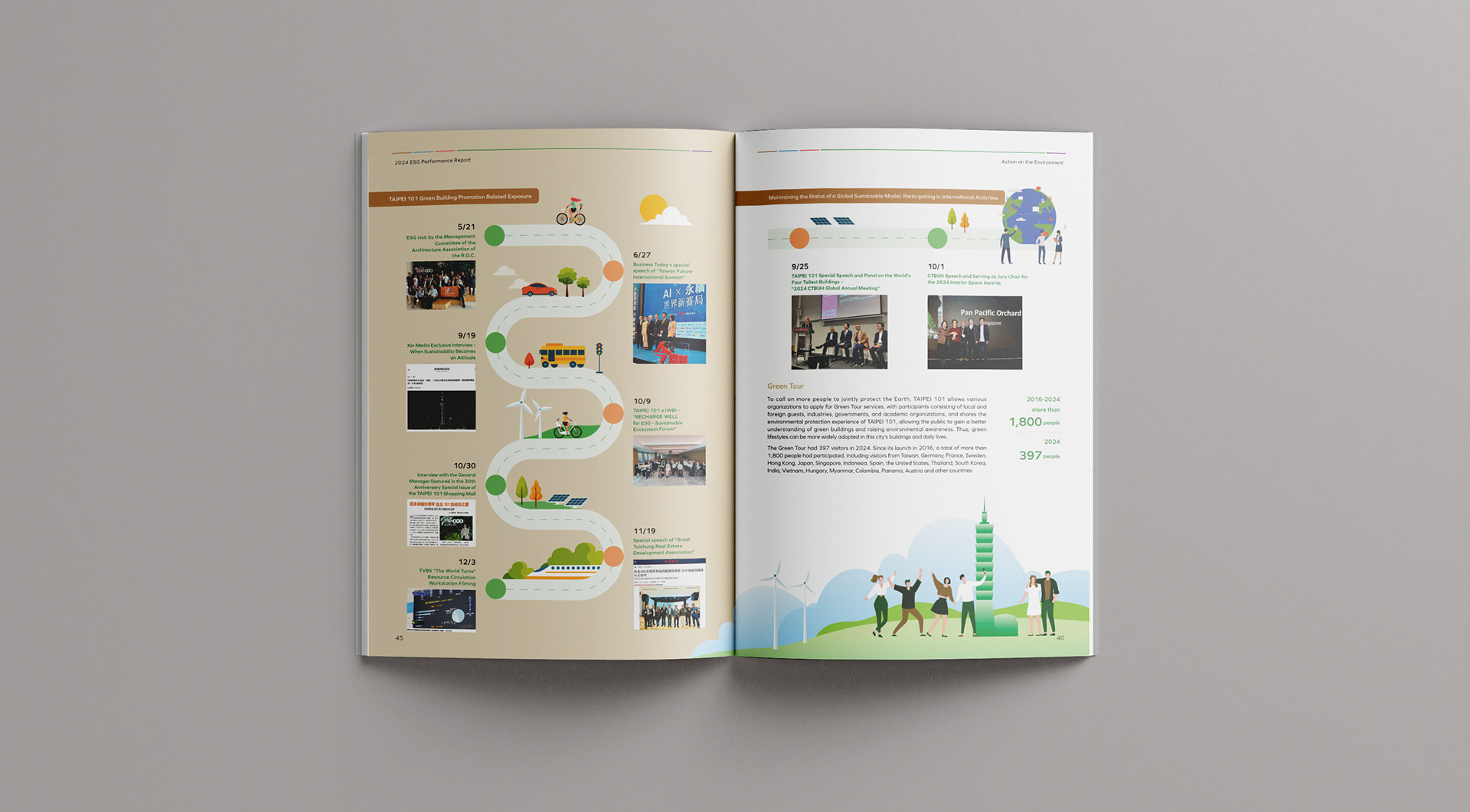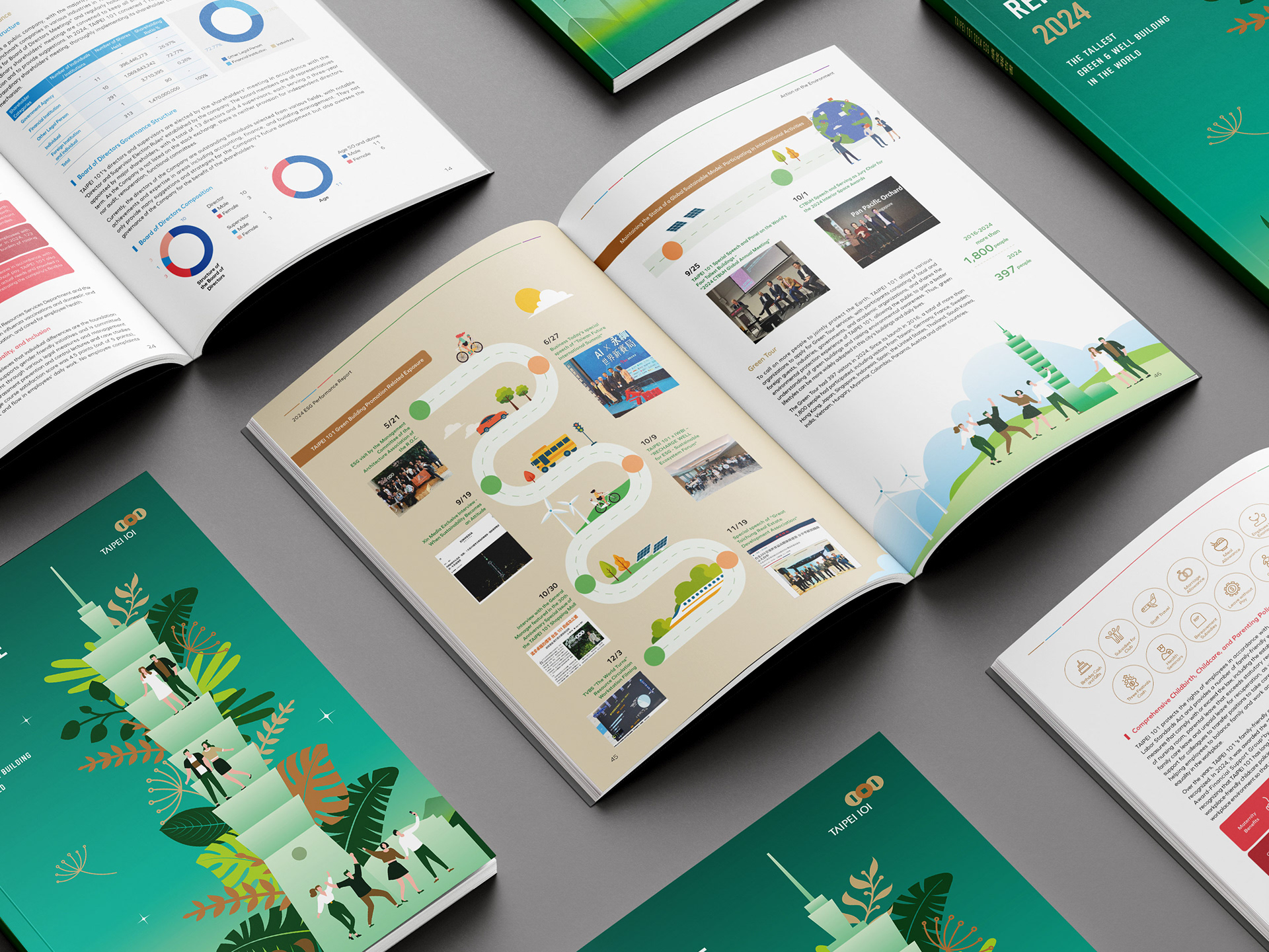 The cover design employs vibrant colors and dynamic composition to express the values of diversity and social inclusion, echoing Taipei 101’s strong commitment to advancing public welfare initiatives. Beyond celebrating inclusivity and social connection, the design underscores Taipei 101’s role as a catalyst for collective good and a leader guiding society toward a more inclusive and sustainable future.