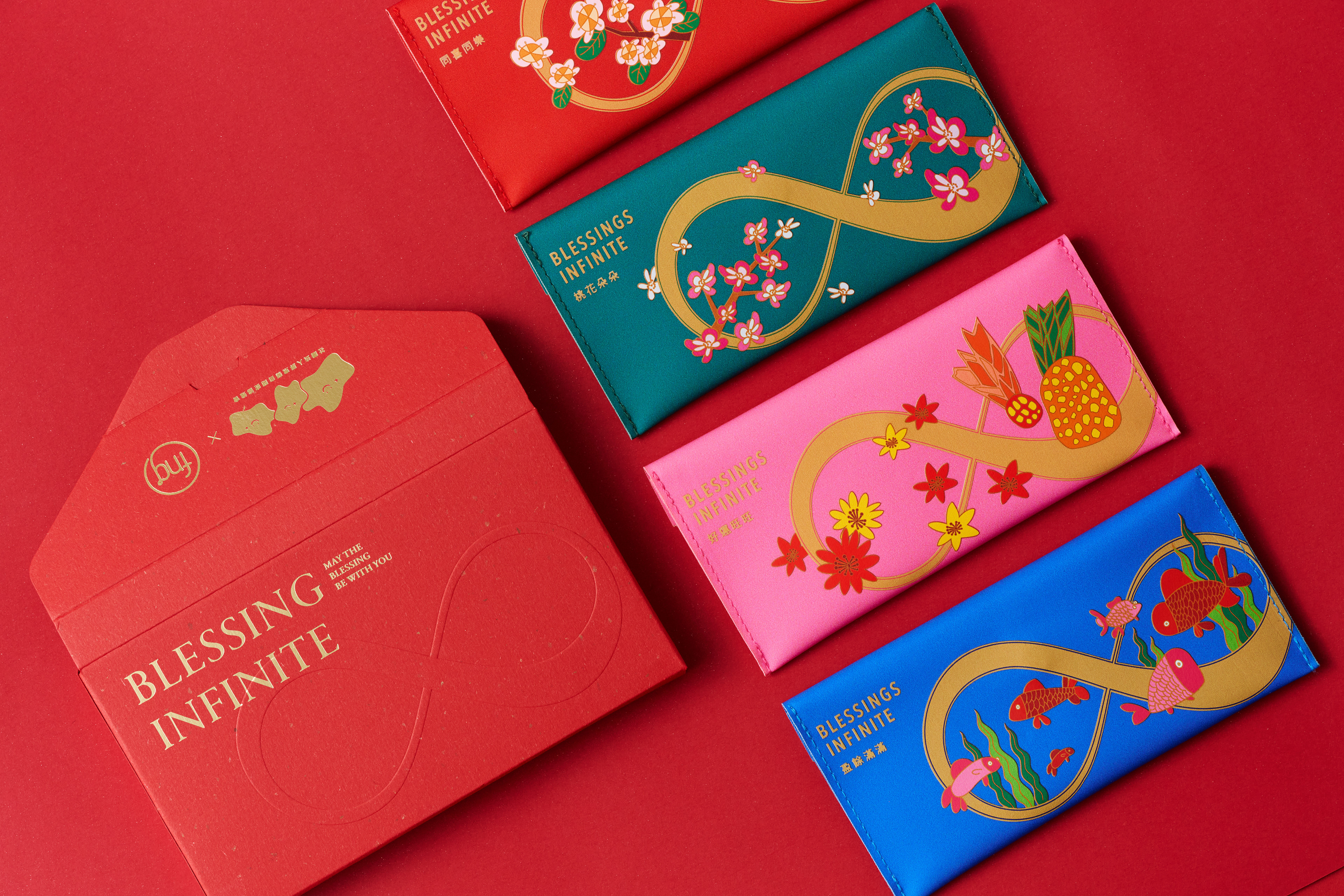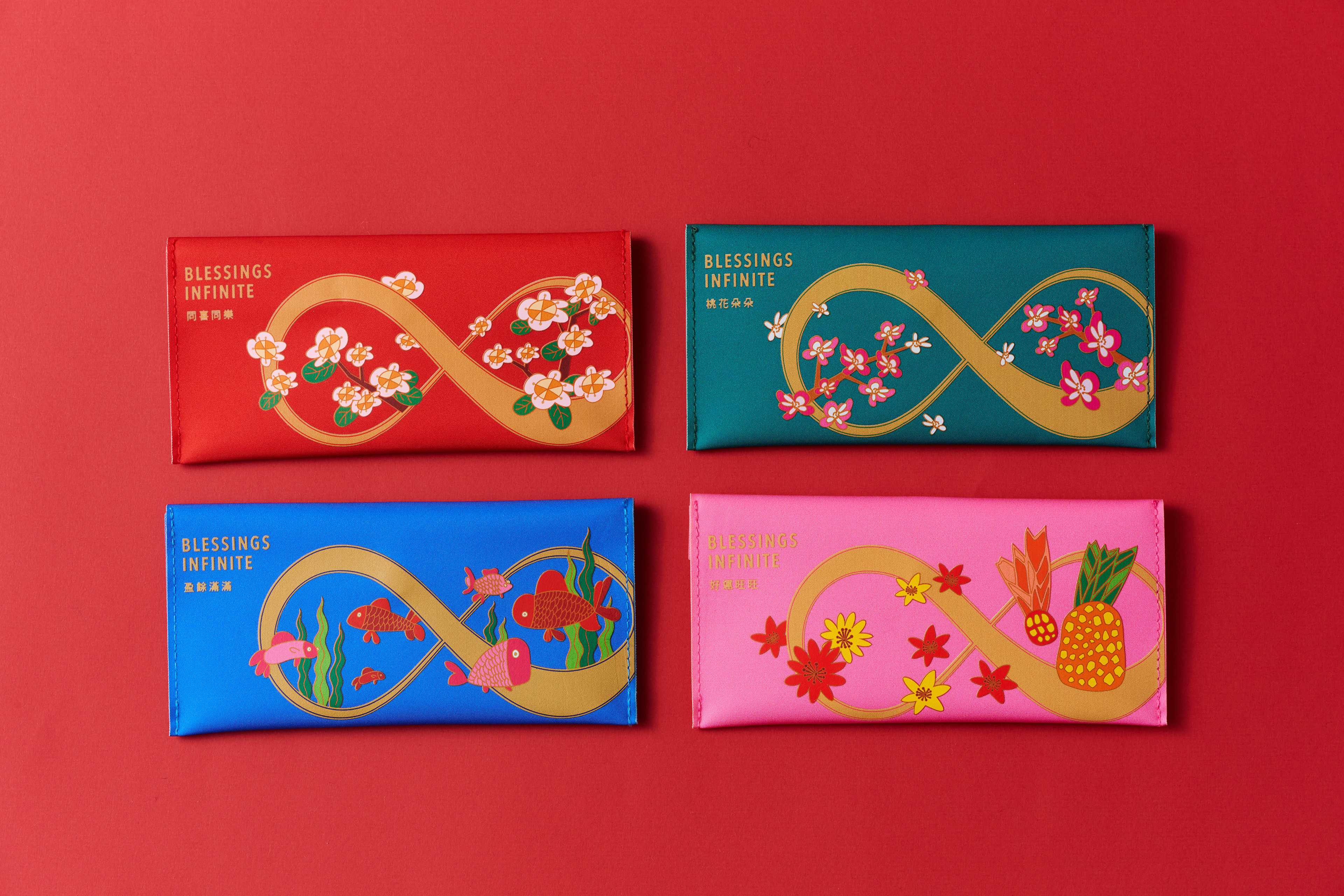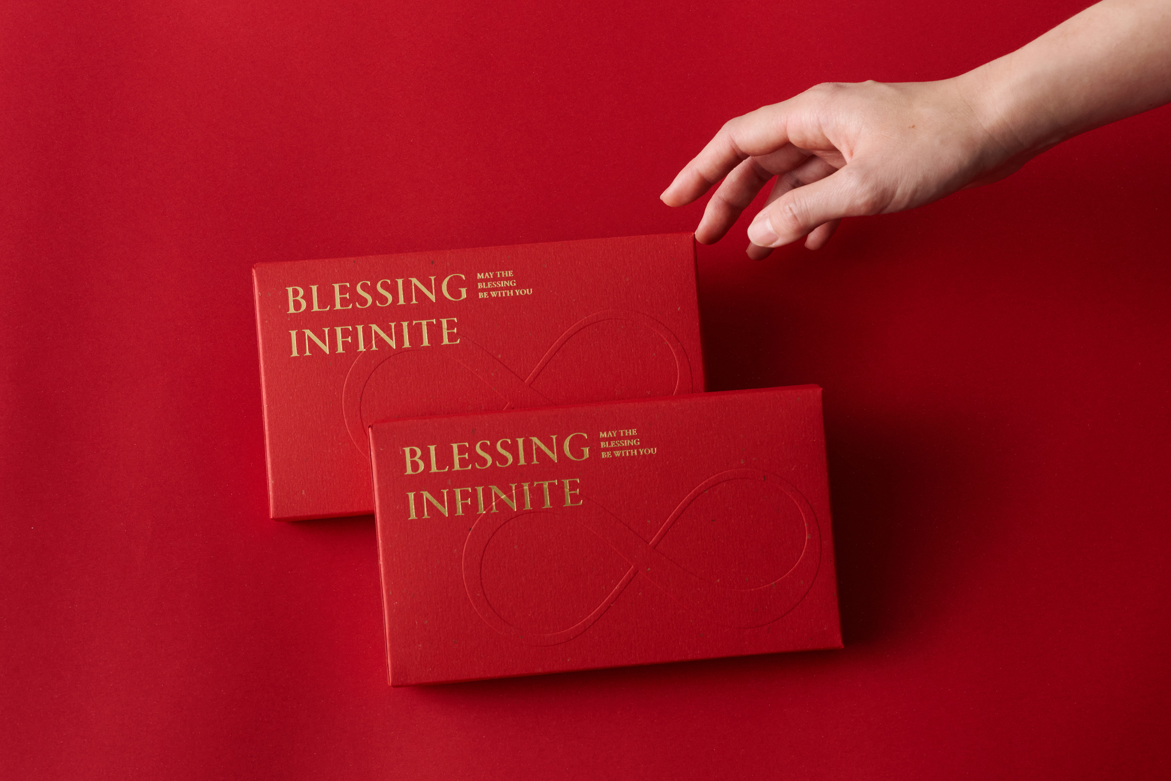 Blessing Infinite Inspired by the idea of lasting sustainability, this red envelope symbolizes blessings that flow through time and continue to grow. The golden Möbius loop serves as the central visual, representing infinite fortune and endless blessings— allowing heartfelt wishes to accumulate with every turn. Elements from the original artworks created by person with autism inspire four themed designs—Tung Blossom, Pineapple, Peach Blossom, and Fish, each symbolizing a different expression of hope and goodwill. Through these gentle and sincere creations, warmth and kindness are shared from one person to another, so that every act of giving and receiving becomes the beginning of blessings carried forward. The outer box is made from Chun Pure Paper, created by blending coffee roasting by-products with recycled milk carton pulp. Through this circular upcycling process, waste materials are given new life, reducing environmental impact and echoing the sustainable spirit of this design.