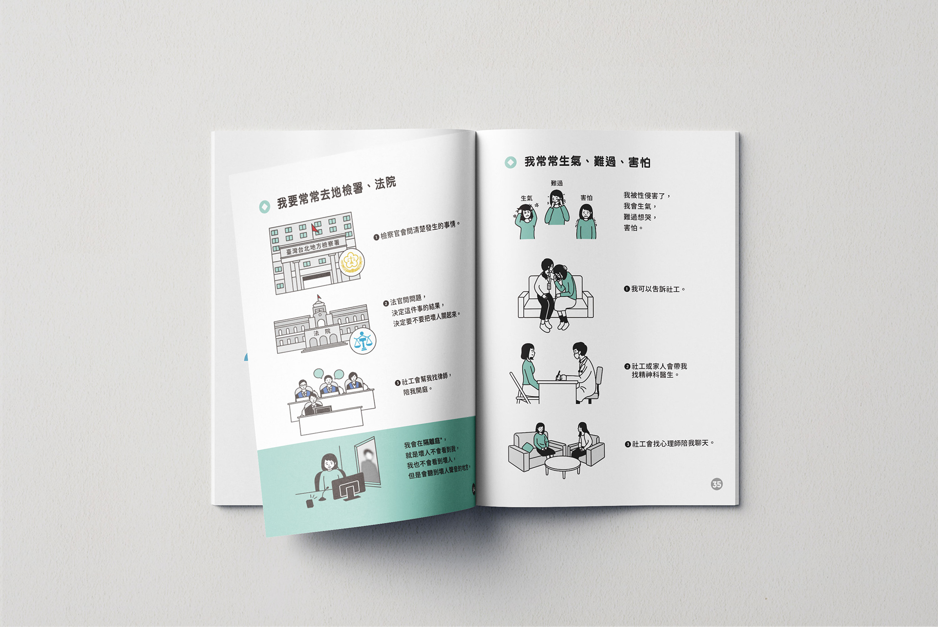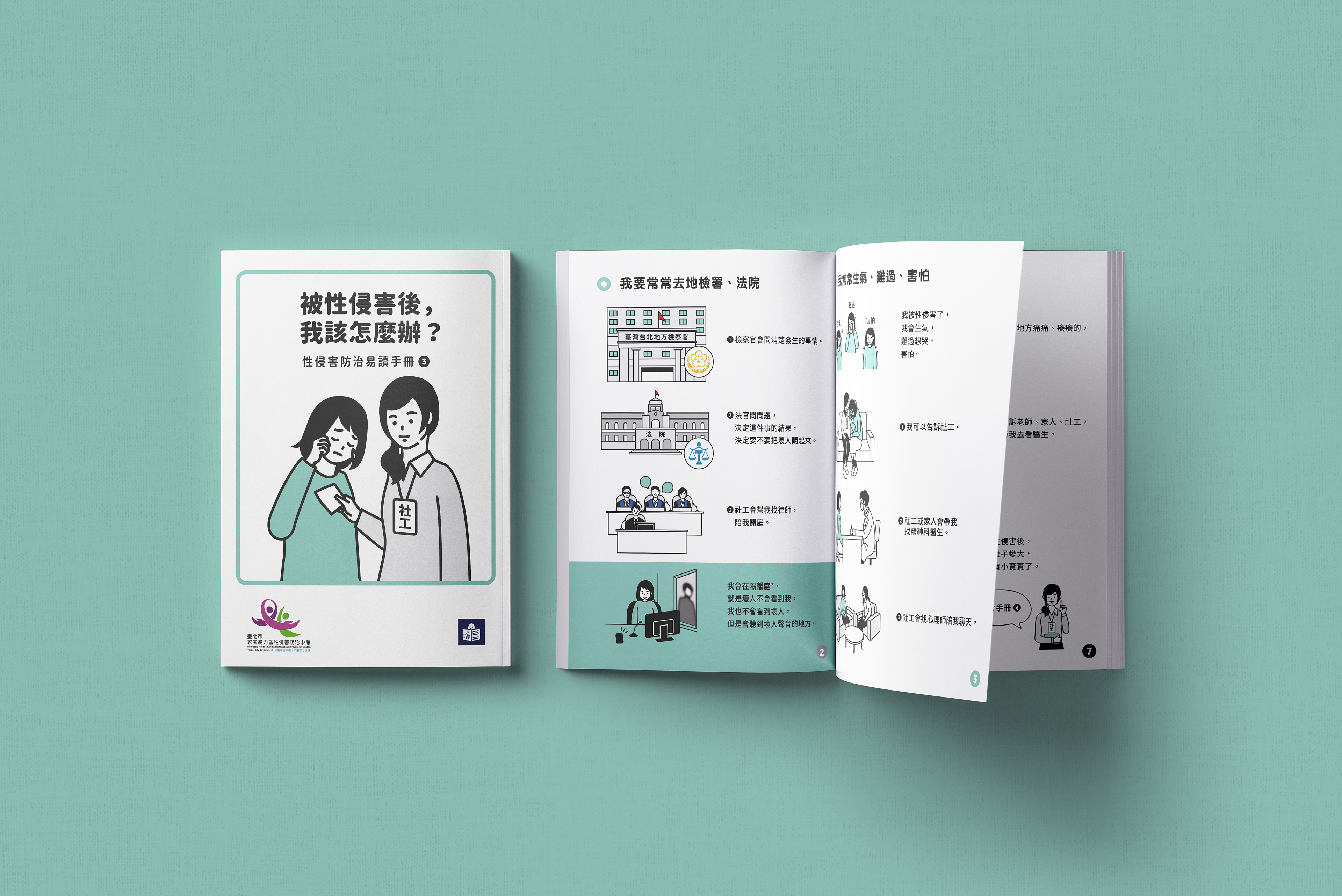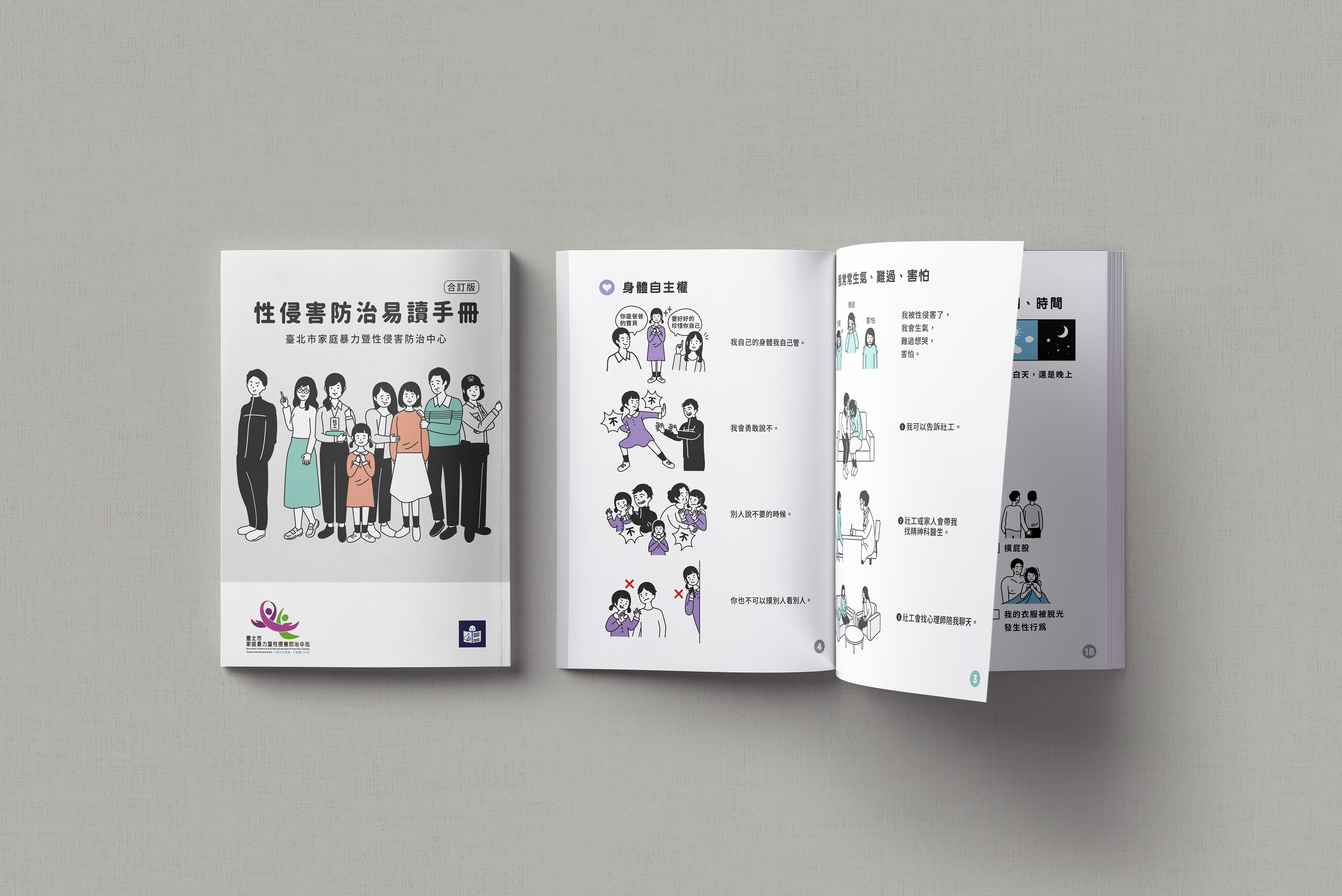 這本手冊可以告訴我們:沒有經過同意,碰觸隱私部位就是性侵害,遇到性侵害後,可以找誰陪同處理這些事,