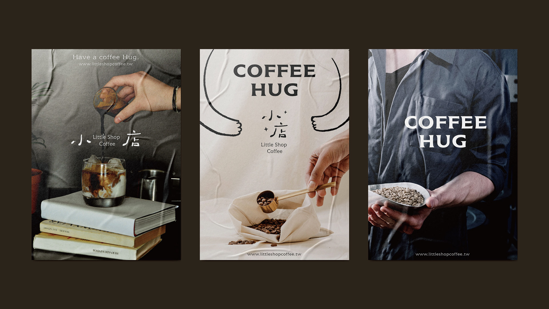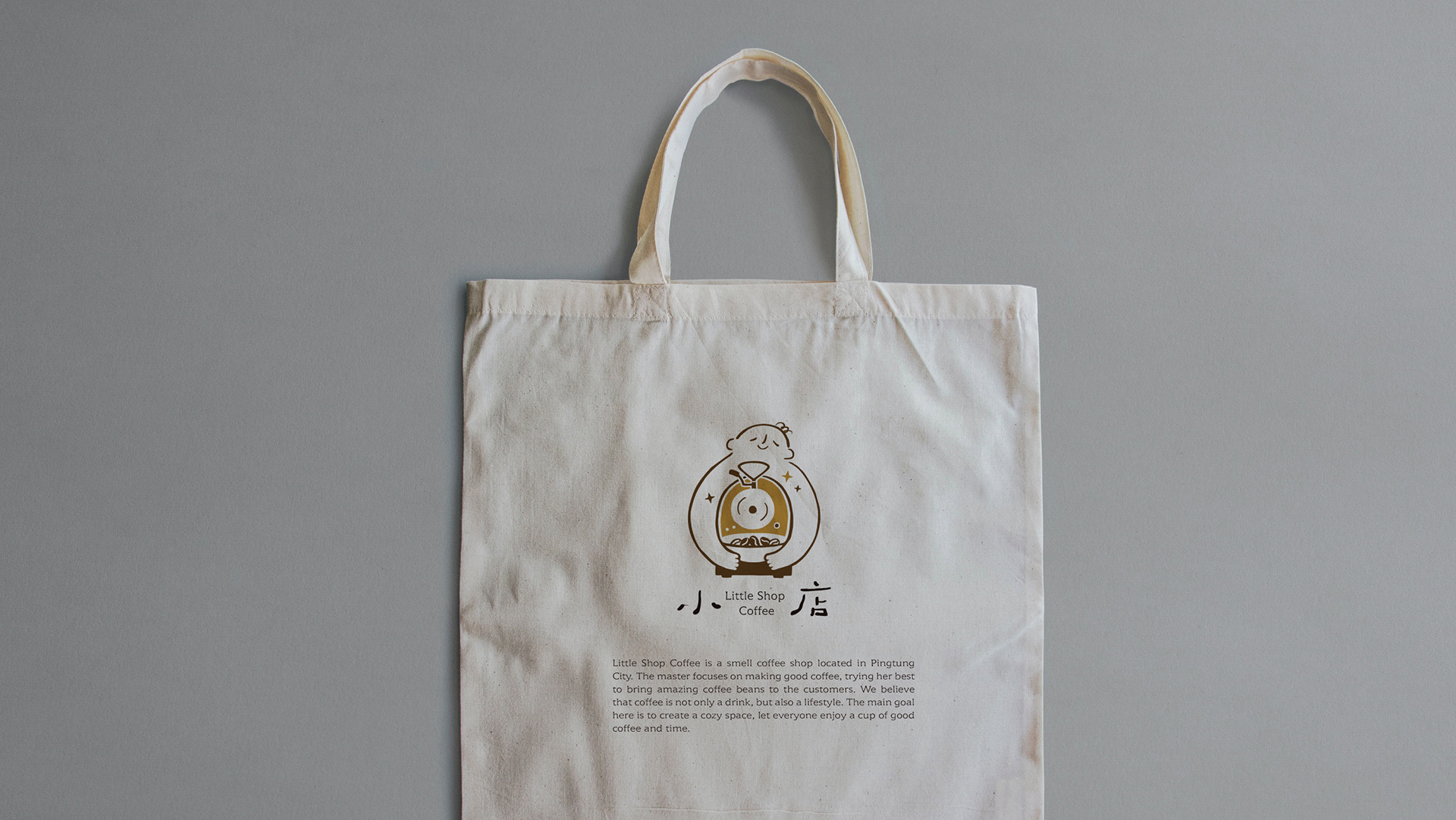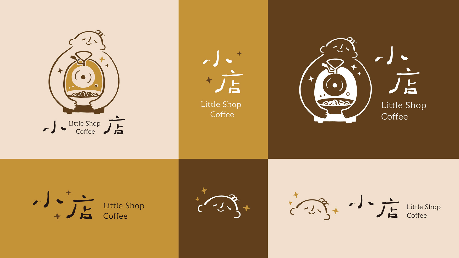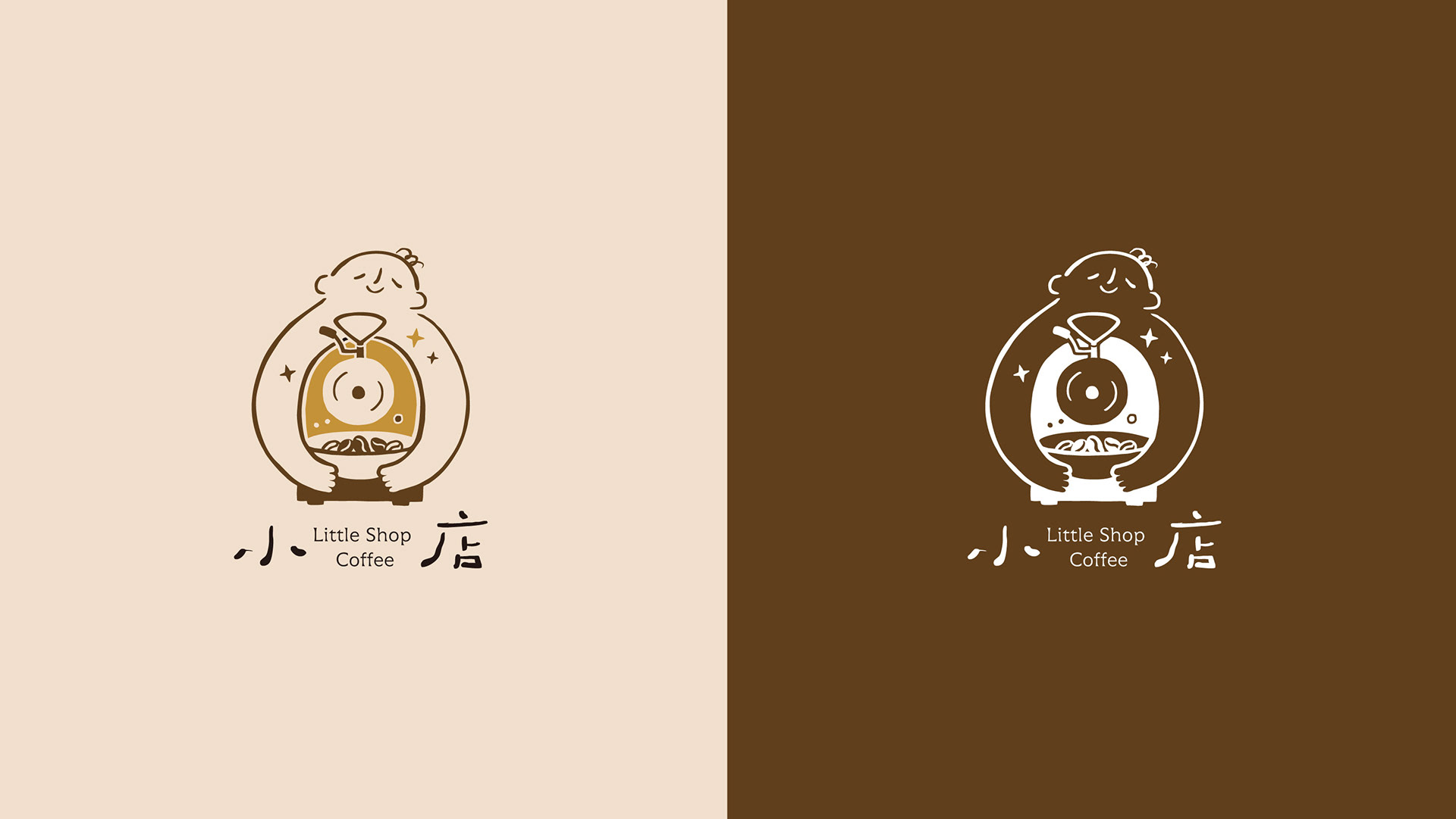小店咖啡的店名顧名思義,就是將店主希望開設一間簡單、沒有太多煩擾的咖啡店,降低自我意識,不需要和別人比較、只要潛心專注烘製好喝的咖啡。 因此logo設計上直接傳遞品牌的初衷「用心烘豆,誠心分享」,以簡單的手繪線條勾勒簡約人物外型, 並且用「小」字來點綴五官,呈現柔和、包容的表情。也將擁抱的手和烘豆機的輪廓結合,展店店主對咖啡發自內心的真誠和喜愛,並傳達想以咖啡與人們建立感情連結。用最誠懇的心 邀請各路的咖啡愛好者,一起來小店品嚐咖啡的簡單美好。