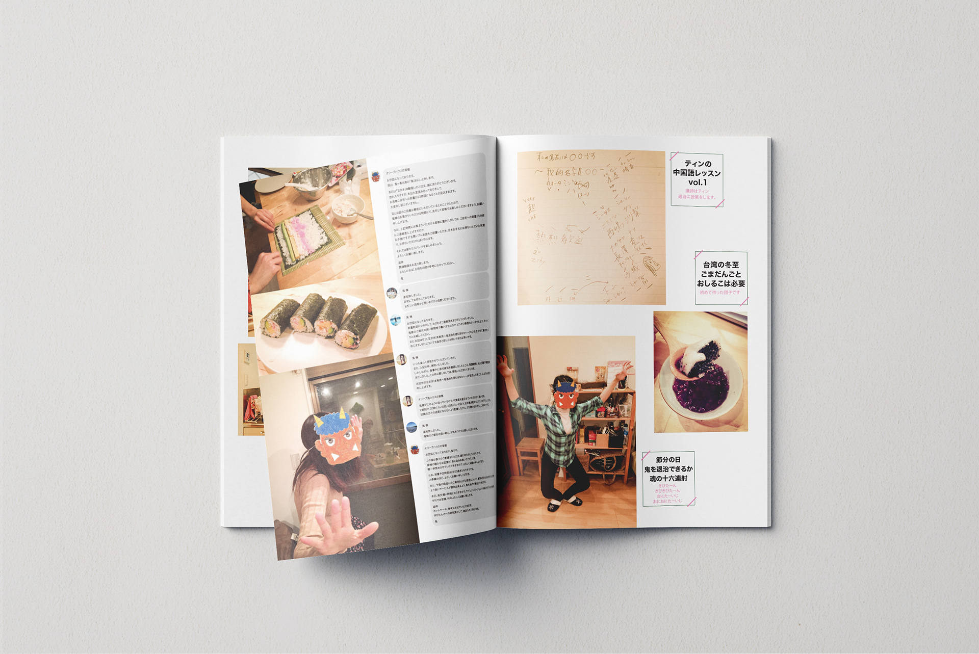 在日本為期一年的打工度假期間,不僅體會當地的文化、工作、人際關係,最重要的是遇到了很棒很棒的室友。室友們來自日本各地,有不同的家庭背景、職業,但都是非常溫柔的人,一年之中除了舉辦多次的party、結伴出遊、更一起去台灣玩。因此將這一年發生的大小事、各式活動、住宅空間集結成一本小誌,記錄這最溫柔的魔幻時光。