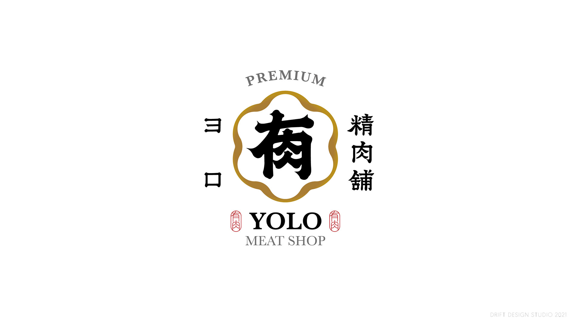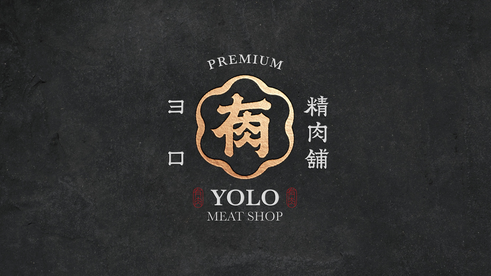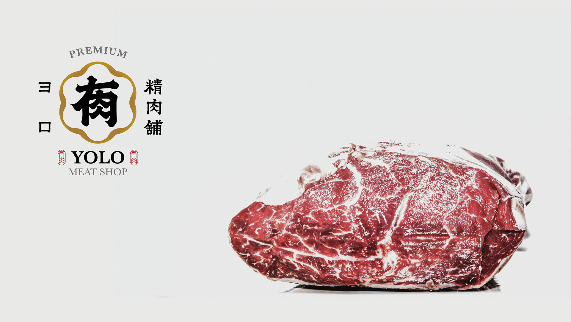 品牌形象以「日式職人」及「信賴專業」為主要溝通點。 標誌圖形以日式家紋傳遞專業信賴之感,並參考傳統日式的編排組合。YOLO取自日文「よろしく」,也諧音中文字「有肉」,以飽滿渾厚的筆觸勾勒出組合書法字作為主要視覺,磅礴的運筆給人中氣十足以及穩重可靠的形象。邊框輪廓參考肉品的擺盤,粗細起伏的曲線則象徵肉片及油花的柔軟質感。標準字以楷體為骨幹,微調起筆和收筆處,讓整體更為細膩圓潤,呼應品牌的職人精神,嚴謹中帶有氣質。