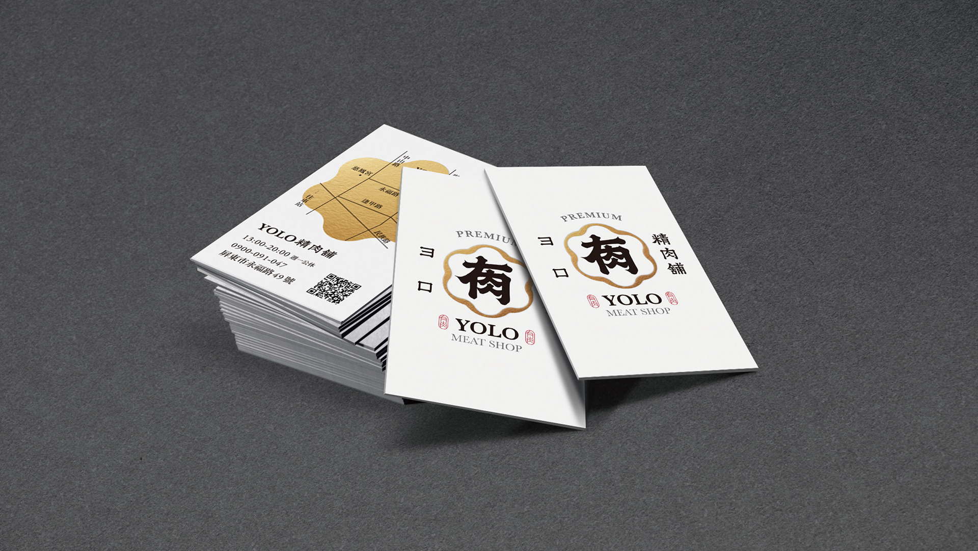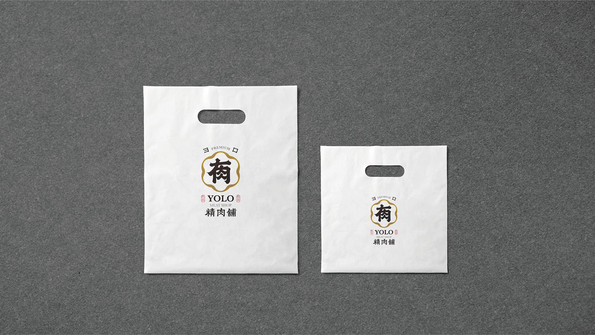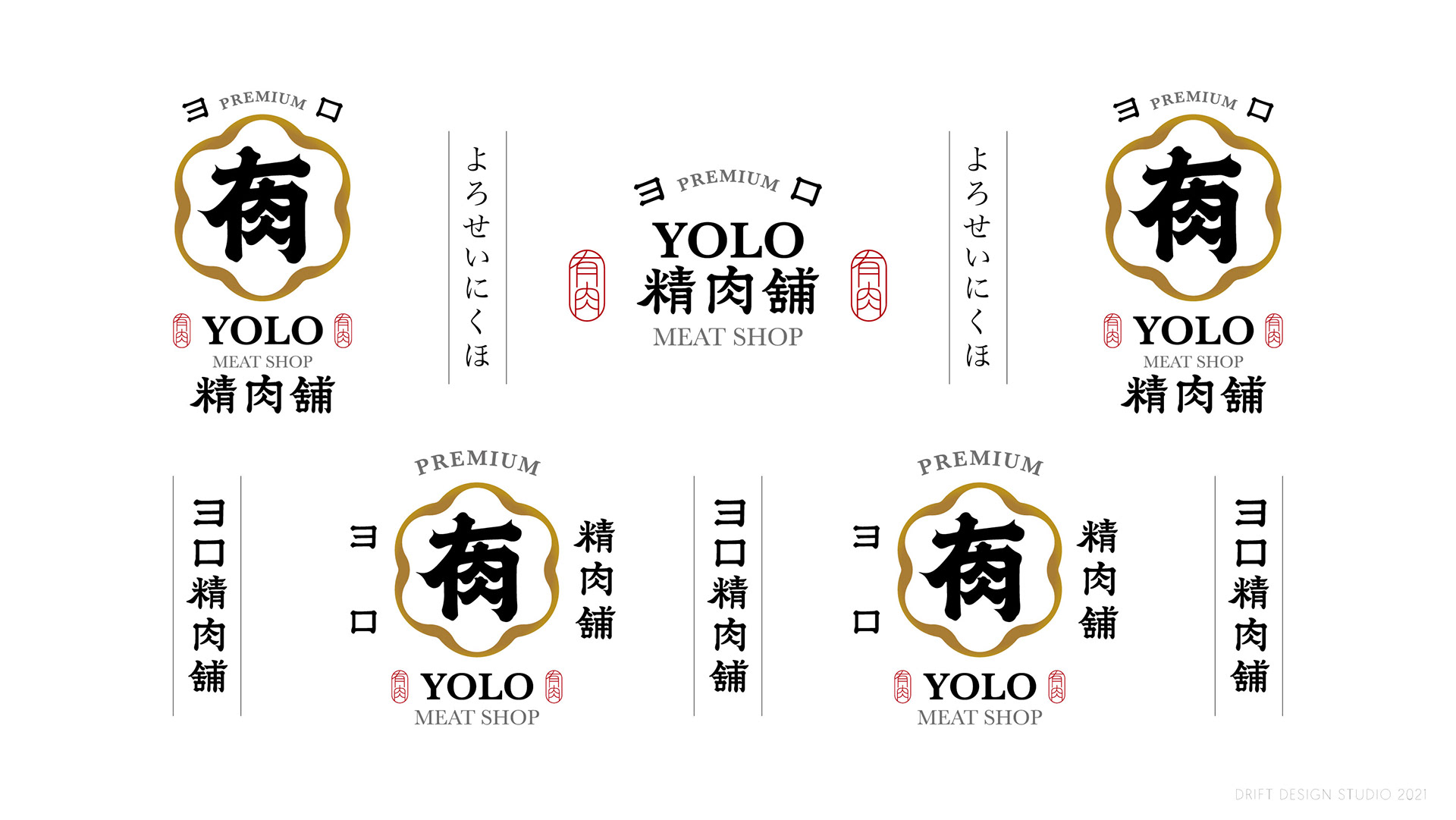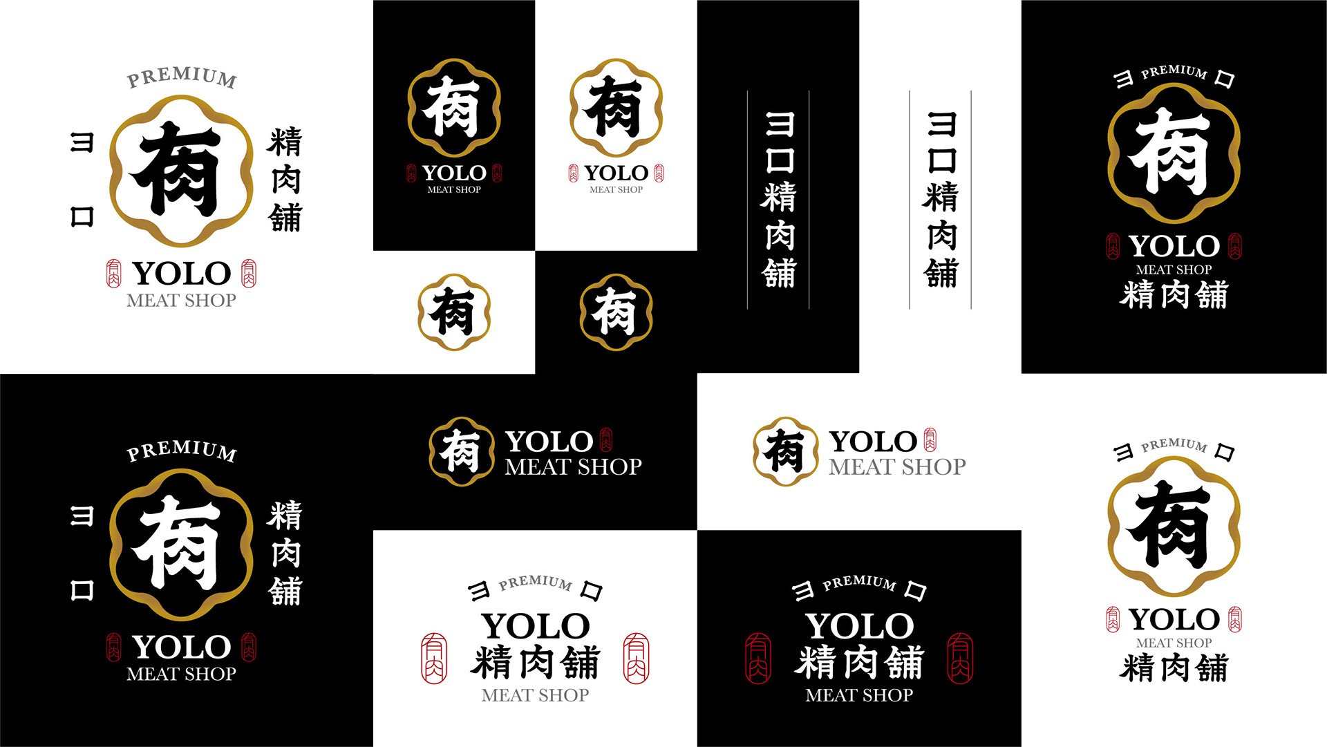 品牌形象以「日式職人」及「信賴專業」為主要溝通點。 標誌圖形以日式家紋傳遞專業信賴之感,並參考傳統日式的編排組合。YOLO取自日文「よろしく」,也諧音中文字「有肉」,以飽滿渾厚的筆觸勾勒出組合書法字作為主要視覺,磅礴的運筆給人中氣十足以及穩重可靠的形象。邊框輪廓參考肉品的擺盤,粗細起伏的曲線則象徵肉片及油花的柔軟質感。標準字以楷體為骨幹,微調起筆和收筆處,讓整體更為細膩圓潤,呼應品牌的職人精神,嚴謹中帶有氣質。